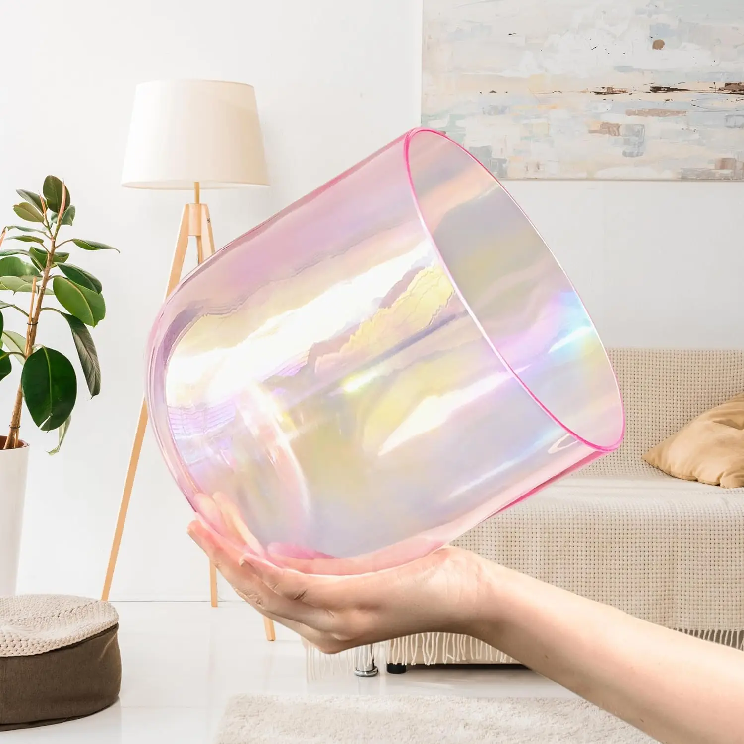 Open your heart and tune into higher harmony with this stunning iridescent crystal singing bowl, precisely tuned to the note F at 440 Hz — the frequency that resonates with the Heart Chakra.
