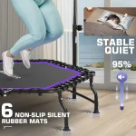 - 【Ultra Quiet】 The 50″ mini trampoline features a sturdy bungee design. Say goodbye to the noise of metal springs. We provide you with 6 removable rubber feet to reduce noise, avoid slipping and protect your floor. The included bungee mat outer layer reduces noise and the risk of stepping on bungee cords while bouncing. You can feel that every part of the trampoline has stood the test of time and will last a lifetime.
