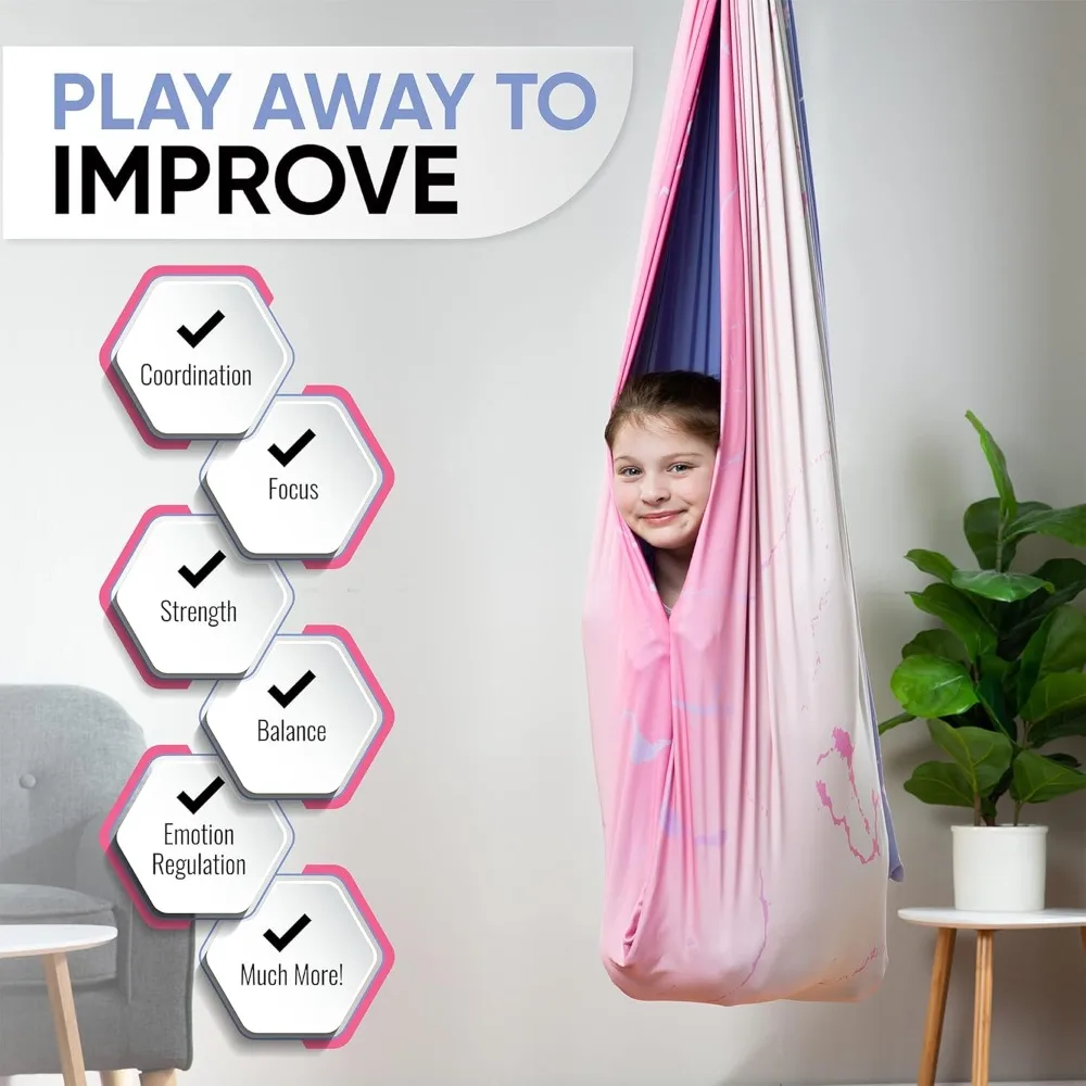 - Designed to help sensory seekers regulate their emotions. The swinging motion paired with compression provides the perfect vestibular sensory input, calming, and grounding for the nervous system.